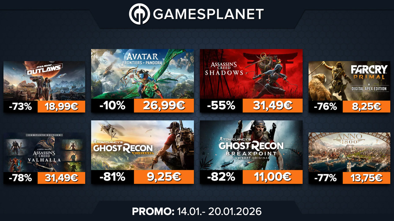 Erkunde eine weit, weit entfernte Galaxis, werde zum Meister-Assassinen und liefer dir rasante Rennen in unserer brandneuen Ubisoft Publisher Week. Dich erwarten großartige Angebote wie Star Wars Outlaws mit beeindruckenden 73% Rabatt. Reise nach Japan mit Assassin's Creed Shadows oder baue Imperien in Anno 1800 – aktuell um 77% reduziert! Check die Promo-Seite für die komplette Auswahl aller Angebote, die bis zum 20. Januar gelten.