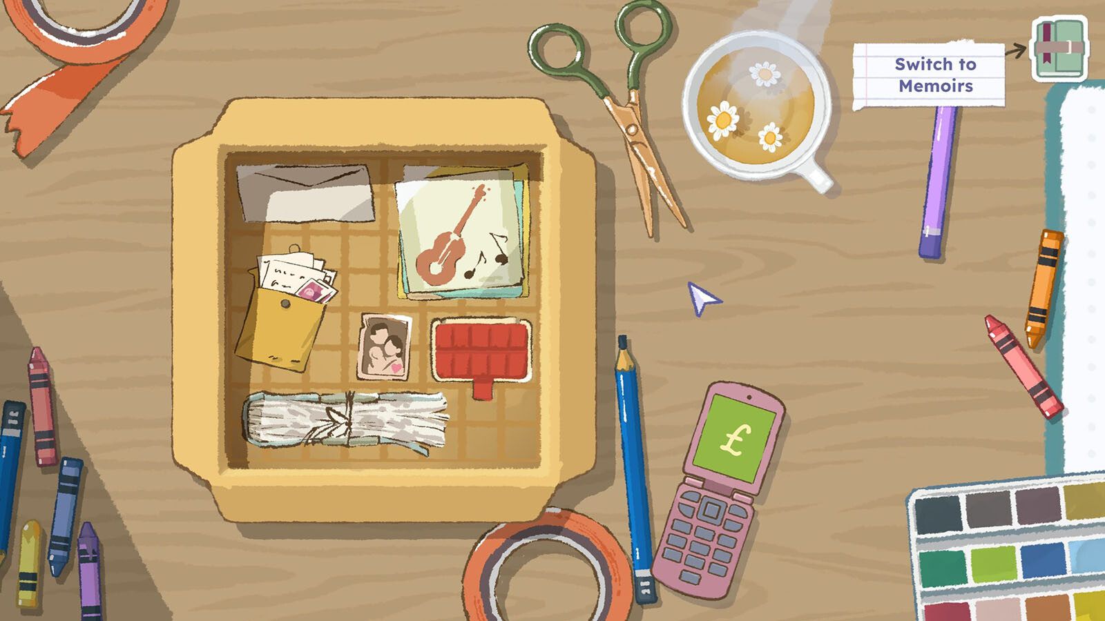 Jeder Gegenstand, den du aufbewahrst, schaltet eine Reihe damit verknüpfter Wörter frei. Verwende diese, um die Lücken in den beschädigten Memoiren zu füllen und so die Sätze zu vollenden, die von einem bewegten Leben erzählen.