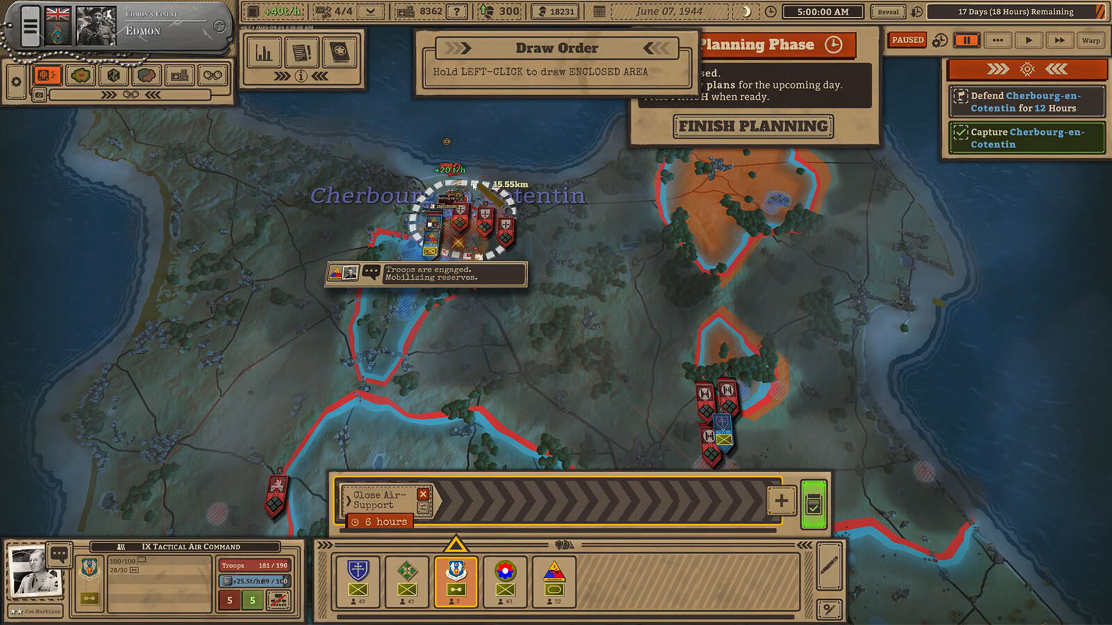 Entwickle intuitiv ausgefeilte, mehrstufige Pläne für mehrere Einheiten, indem du direkt auf der Karte zeichnest. Setze verschiedene Taktiken ein, wie z. B. Verteidigung in der Tiefe, Gegenangriffe, geplante Rückzüge und vieles mehr. Führe vor großen Angriffen vorbereitende Bombardements durch und teile dann die Division auf, um mehrere Ziele zu erobern.