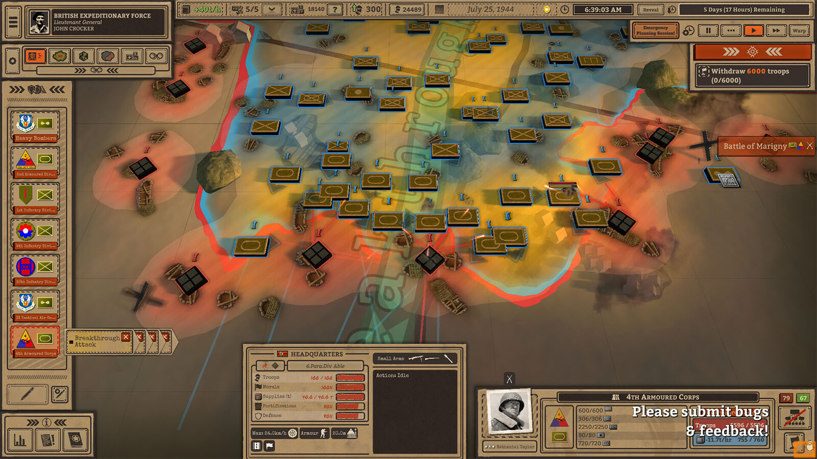 Spiele mehr als 10 gewaltige historische Schlachten, die im Rahmen der Kampagne zur Befreiung Frankreichs stattfinden, und baue deine beständige Armee aus. Verbessere deine Divisionen mit neuen Ausrüstungsgegenständen und befördere Offiziere. Lasse verwundete Divisionen ausruhen und sich erholen. Erhalte mächtige Luftunterstützung wie Aufklärungsflugzeuge, Jagdbomber und schwere Bomber.