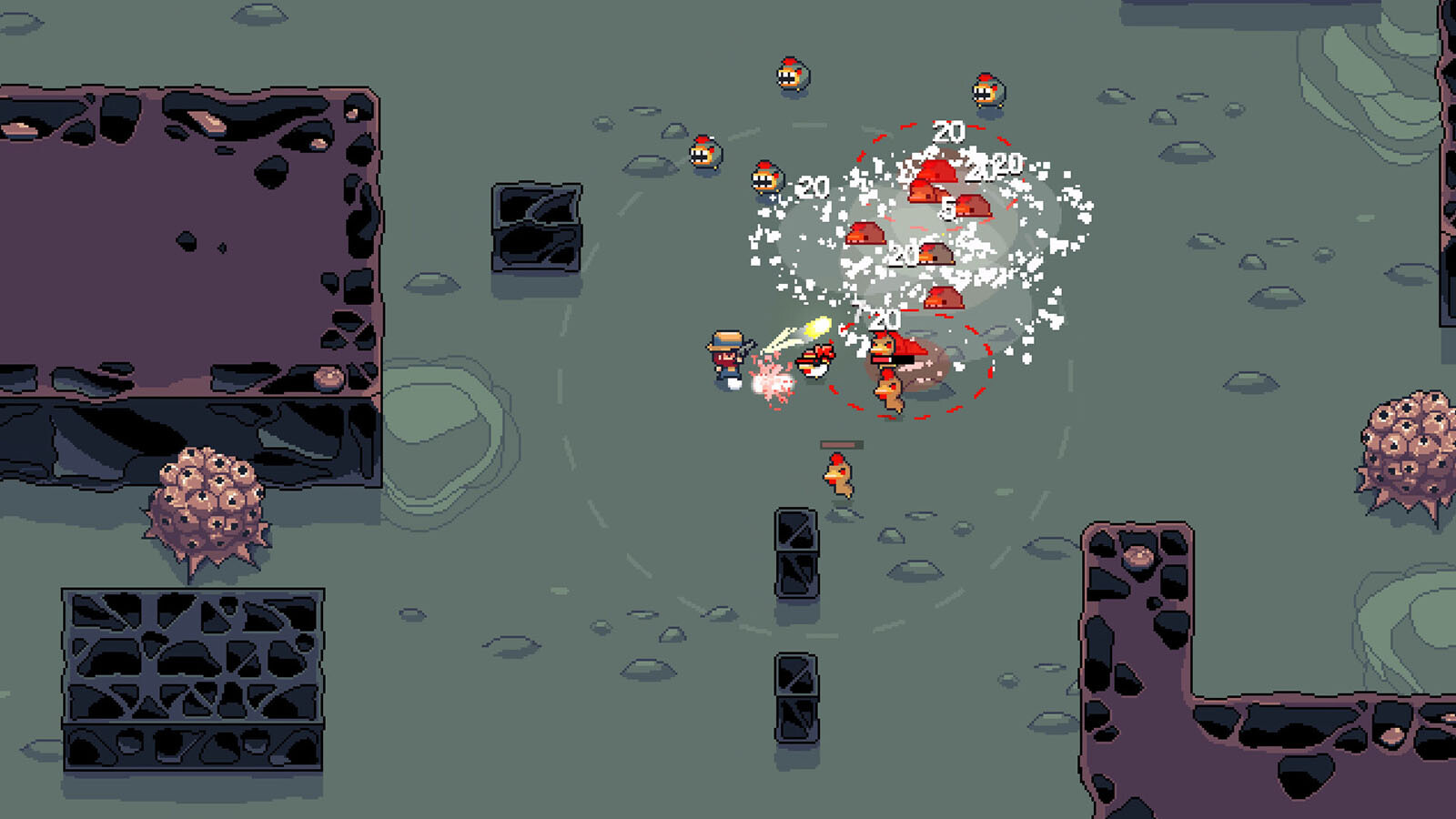 Dank der stapelbaren Mutationen, die du auf dem Weg einsammelst, wirst du in jedem Run absurd übermächtige Massenvernichtungshühner erschaffen, die jedes Gameplay brechen.