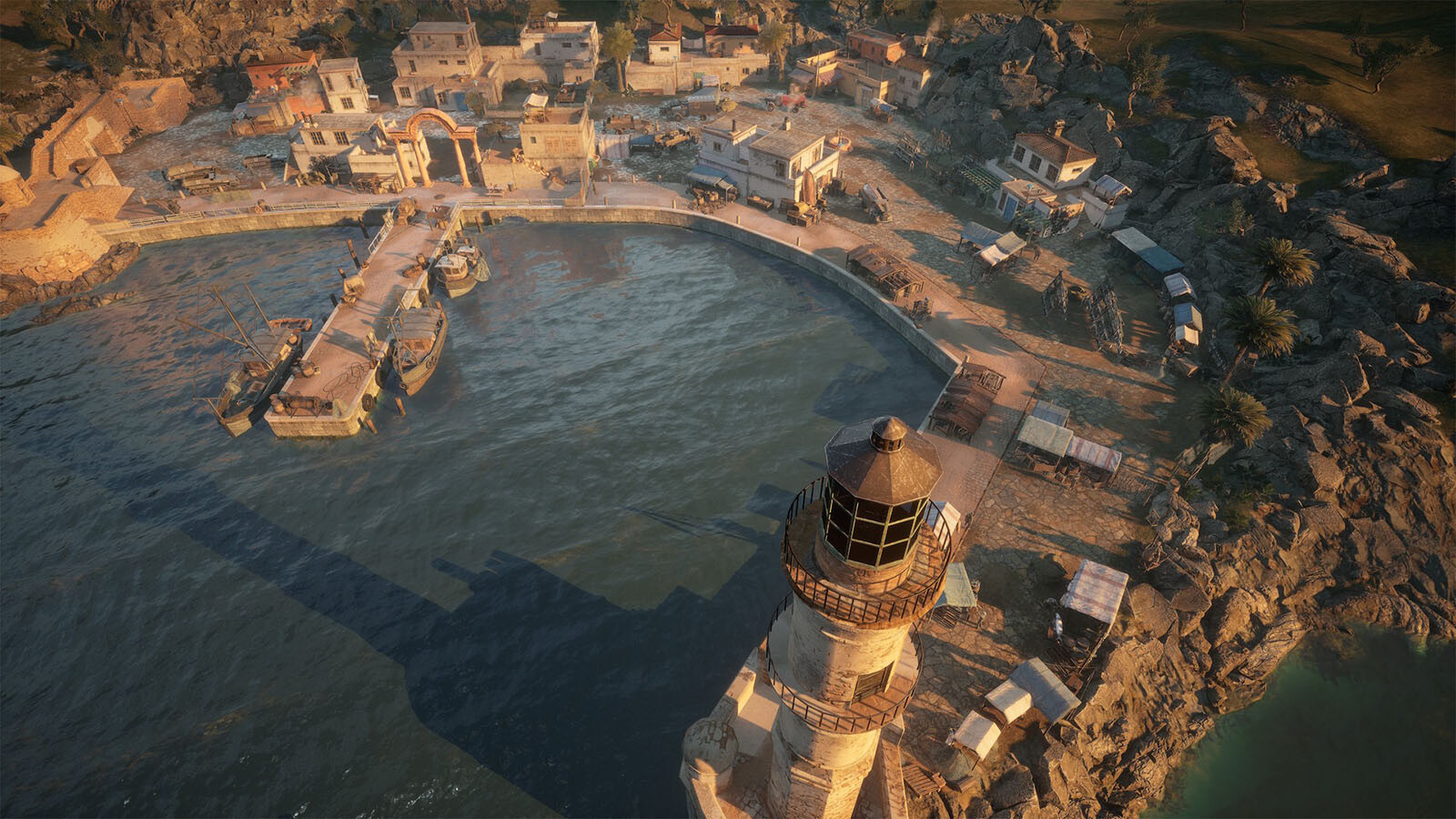 - Die neue Kampagnen-Karte versetzt dich in die sonnendurchflutete Landschaft der Aegis und zeigt die Insel, ihre paradiesischen Küsten und charakteristischen Gebäude, mit hohem Detailreichtum.