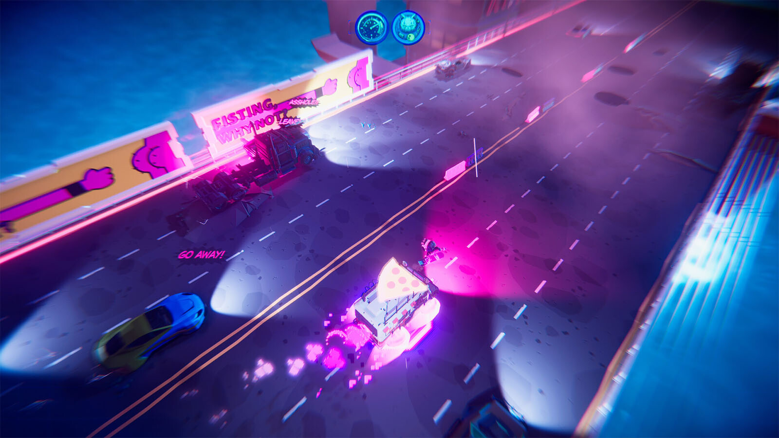 Fahre auf deinem Hoverboard und liefere die Nudeln deines Chefs aus, aber sei vorsichtig: In dieser Cyberpunk-Stadt am Rande des Zusammenbruchs lauern viele Gefahren, von KI-Drohnen bis hin zu schlechten Fahrern, ich würde meine Augen auf der Straße halten.