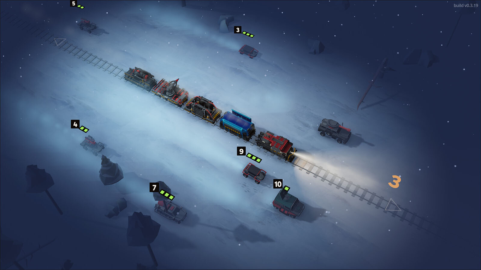 Fahre mit deinem Zug zu einem Bahnhof, damit du dich erholen oder einen neuen Wagen kaufen kannst. Werde im Laufe deiner Fahrt stärker oder baue deine Maschine nach einem harten Kampf wieder auf.