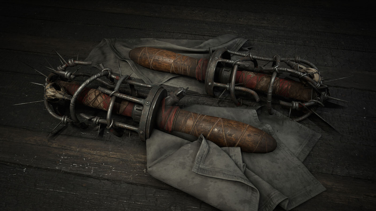 Jeder Liebende hält eine Winfield 1893 Neuanfang Riposte in der Hand, die mit dem Blut des anderen befleckt ist. Der Schnabel mit der Klinge wurde verwendet, um anderen Dienern von Schrottschnabel in den Rücken zu stechen, und die Schrotflinten werden jetzt sowohl zum Schutz als auch zum Verrat eingesetzt.