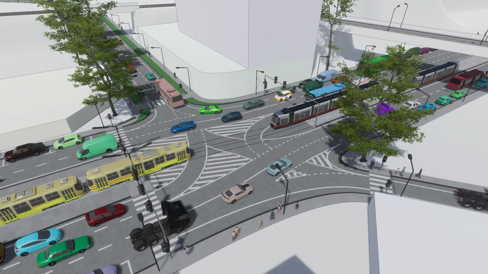 Von einspurigen Einbahnstraßen über sechsspurige Monstrositäten bis hin zu separaten Busspuren, Fahrradspuren und Straßenbahnschienen bietet Junxions eine Vielzahl von Möglichkeiten – es liegt an dir zu entscheiden, wie sie zusammenkommen. Plane Routen um bestehende Strukturen herum, indem du bei Bedarf auf Tunnel und Brücken zurückgreifst, und lege Wege fest, die die Menschen von dort, wo sie herkommen, zu dem Ort führen, wo sie hinmüssen. Bestimme die Regeln für Kreuzungen, indem du nicht nur die Phasen der einzelnen Ampeln festlegst (falls überhaupt welche vorhanden sind), sondern auch Fahrspuren für bestimmte Zwecke festlegst und bei Bedarf Einschränkungen einführst. Lege Vorfahrtsrechte fest, erstelle Fußgängerinseln und Mittelstreifen und platziere Straßenlaternen, Geländer, Lärmschutzwände und zusätzliche dekorative Elemente, um deine Flächen mit Leben zu füllen. Es stehen dir einzigartige Werkzeuge zur Verfügung, mit denen du jeden Aspekt deiner Straßen und ihrer Kreuzungen genau anpassen kannst.