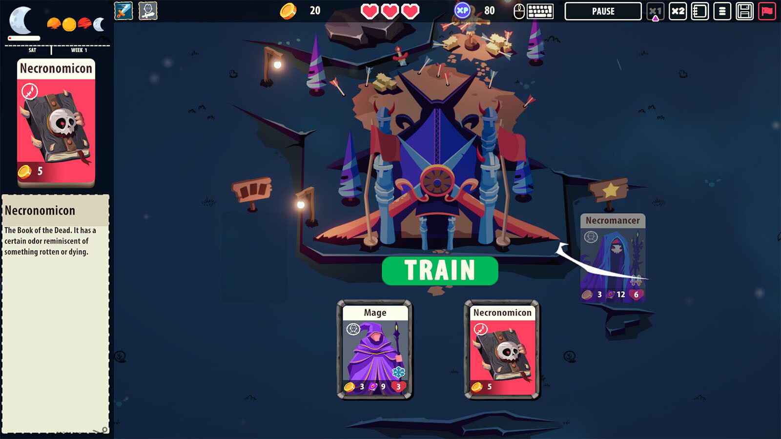 - Waffenkammer – Trainiere deine Einheiten mit unterschiedlichen Waffen, um Soldaten, Bogenschützen, Magier, Nekromanten und mehr zu erschaffen.