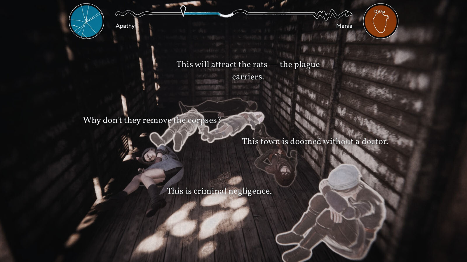 Wie weit würdest du gehen, um die Wahrheit zu finden? Dein mentaler Zustand wirkt sich direkt auf deine Handlungen und sogar darauf aus, wie du Ereignisse interpretierst. Apathie oder Manie können dir neue Erkenntnisse bringen ... oder dich in den Tod führen.