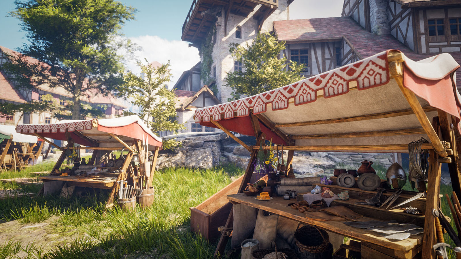 - Die Werkzeuge des Handels - Stelle einen Marktstand auf deinem Grundstück auf, um Waren, handgefertigte Gegenstände oder seltene Rohstoffe zu präsentieren. Nutze das Gold, das du von deinen Abenteuern mitbringst, um mit anderen Spielern zu handeln.