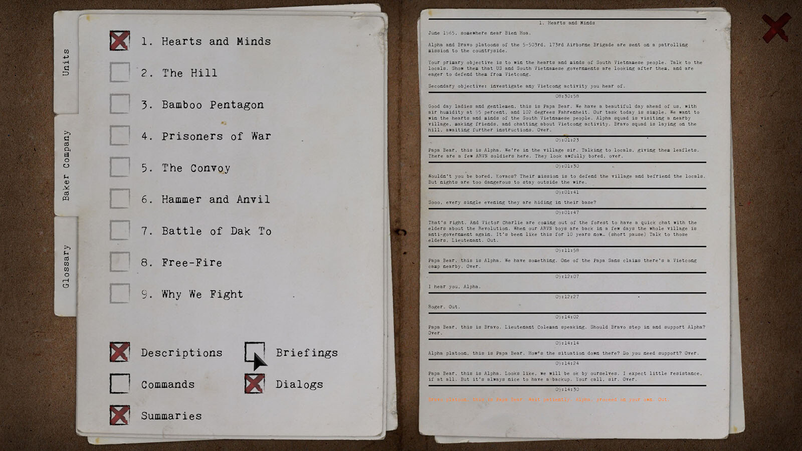 - Logbuch mit allen Dialogen, Missionsergebnissen, Spielerentscheidungen usw.