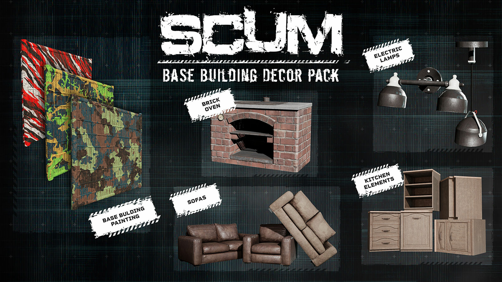 Hier kommt das Stützpunktbau-Deko-Paket für SCUM! Mit diesem kosmetischen DLC kannst du die Inneneinrichtung deines Stützpunkts mit Deluxe-Versionen der im Spiel verfügbaren Möbel aufwerten. Außerdem kannst du deinen vier Wänden mit Farbmustern einen brandneuen Look verpassen und so jedem Besucher zeigen, wer die Hosen anhat!