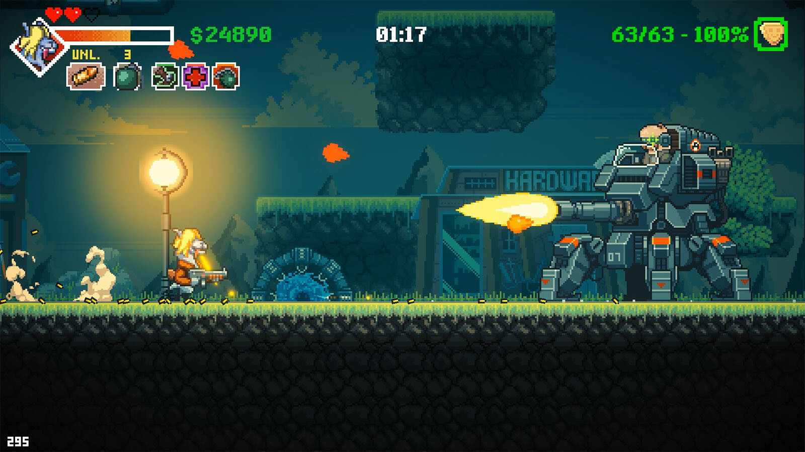 Die visuellen Elemente des Spiels sind in Pixel-Art gestaltet, um eine Retro-Arcade-Ästhetik zu erzielen, die an Spiele aus den späten 80ern und frühen 90ern erinnert. Inspiriert von Klassikern wie Metal Slug und Turrican, sowie modernen Hits wie Broforce, Mercenary Kings und Pizza Tower, bietet Speedollama ein nostalgisches, aber frisches Spielerlebnis.
