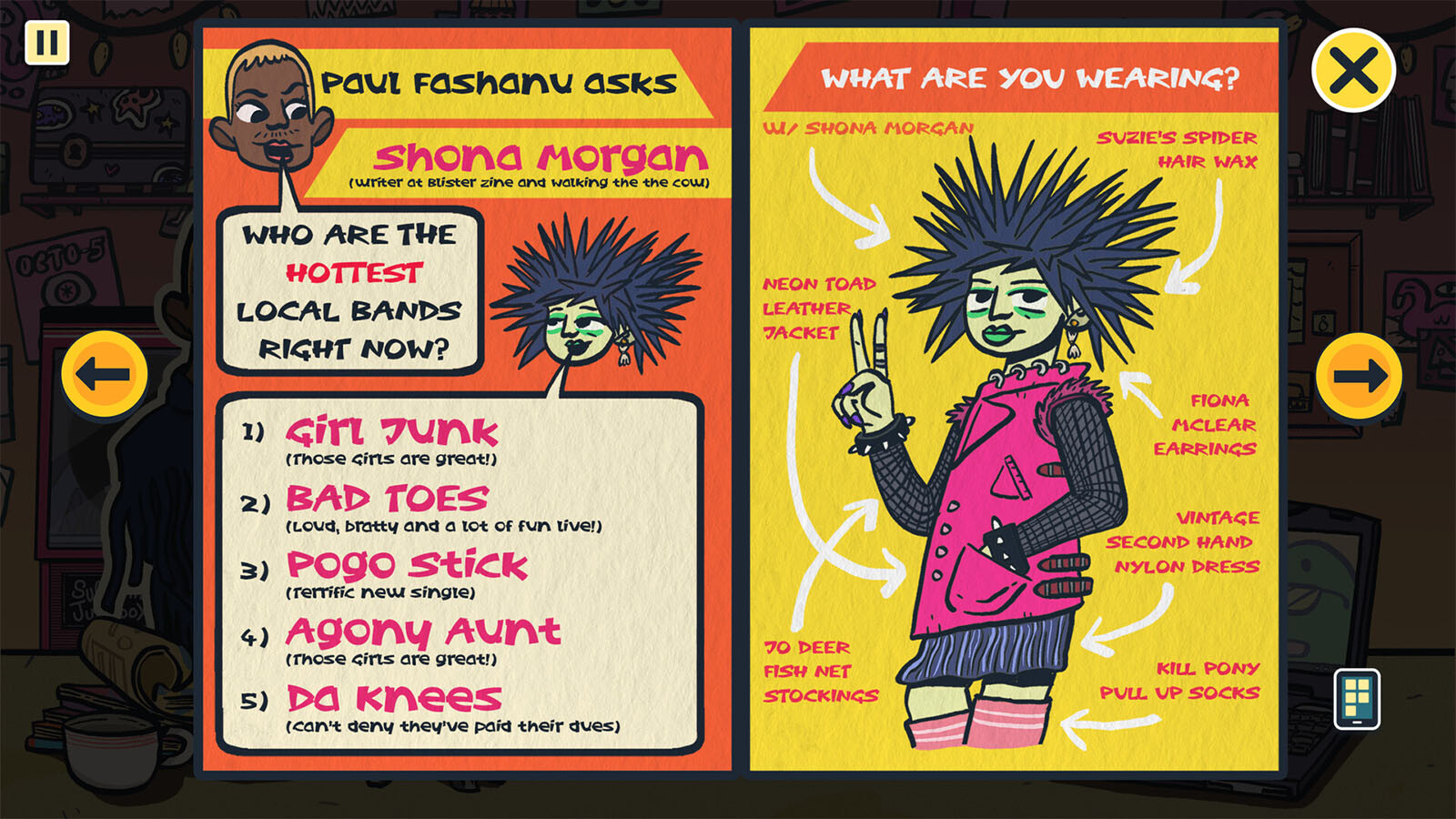 Von Kundenwünschen bis hin zu allerlei Schabernack im Laden – tauche ein in eine Vielzahl einladender Rätsel. Entziffere Hinweise und finde die perfekte Musikempfehlung, indem du Schallplatten durchstöberst, durch Social Media scrollst oder lokale Musikmagazine wälzt. Vielleicht hilft du sogar einer lokalen Band als Lichttechniker aus, gestaltest ein Konzertplakat oder verpackst einfach nur die Bestellungen!